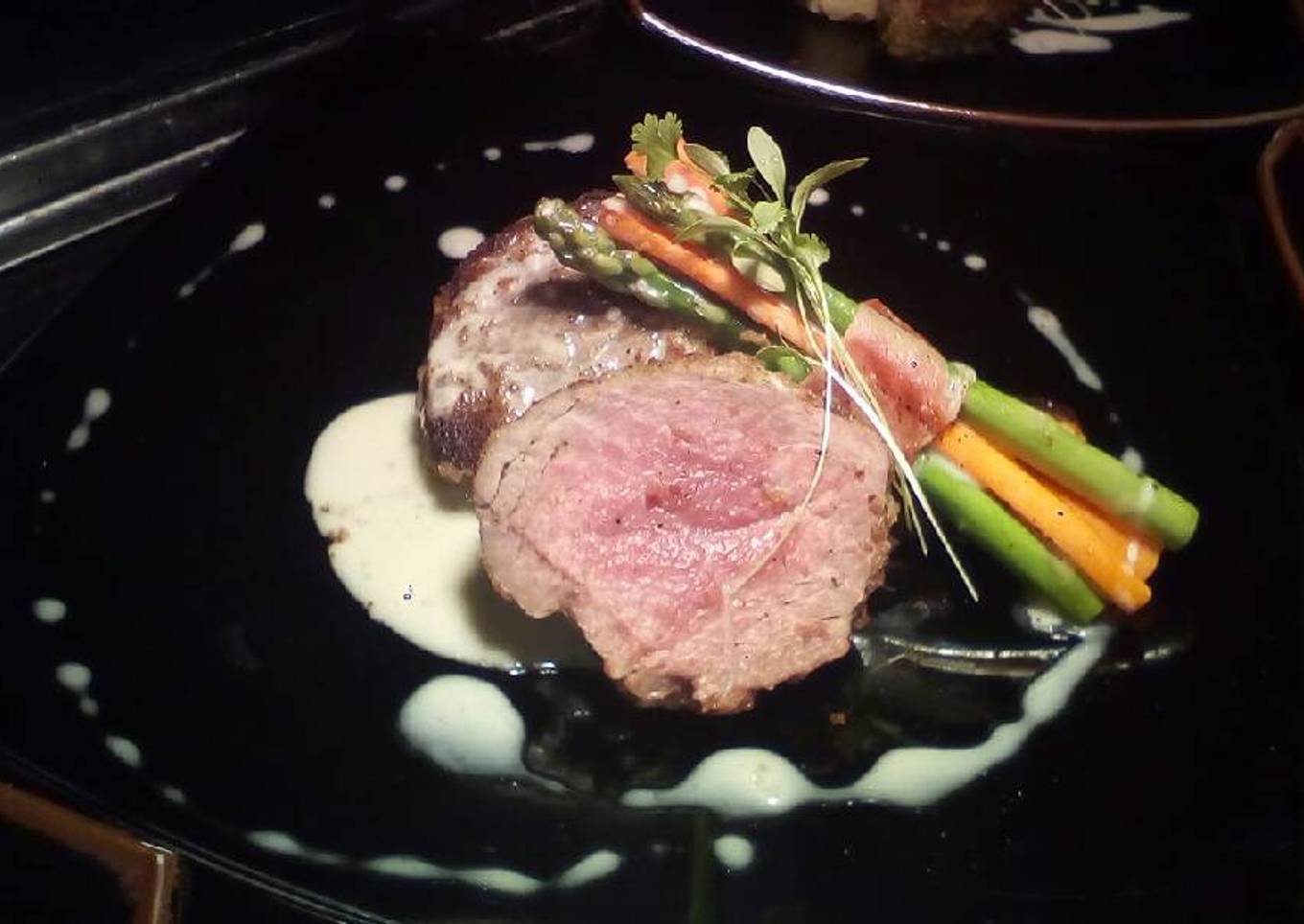 Filete de res en costra de albahacar y salsa de amaretto