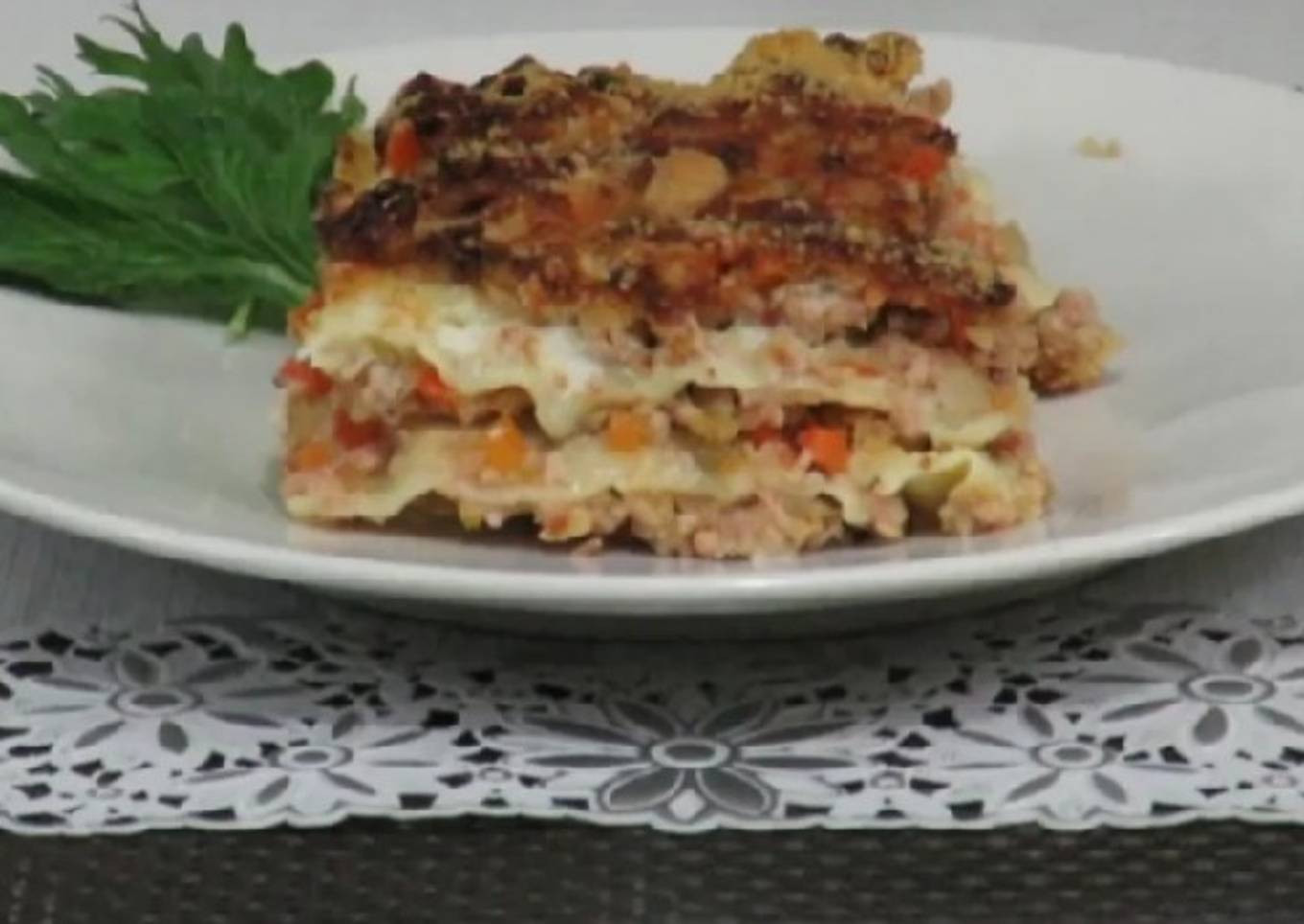 - Revisamos la carne, que las verduras estén en su punto, apagamos el fuego y la mantenemos tapada mientras cubrimos con mantequilla los refractarios, colocamos primero las láminas de pasta hasta cubrir el refractario, bañamos con salsa bechamel.