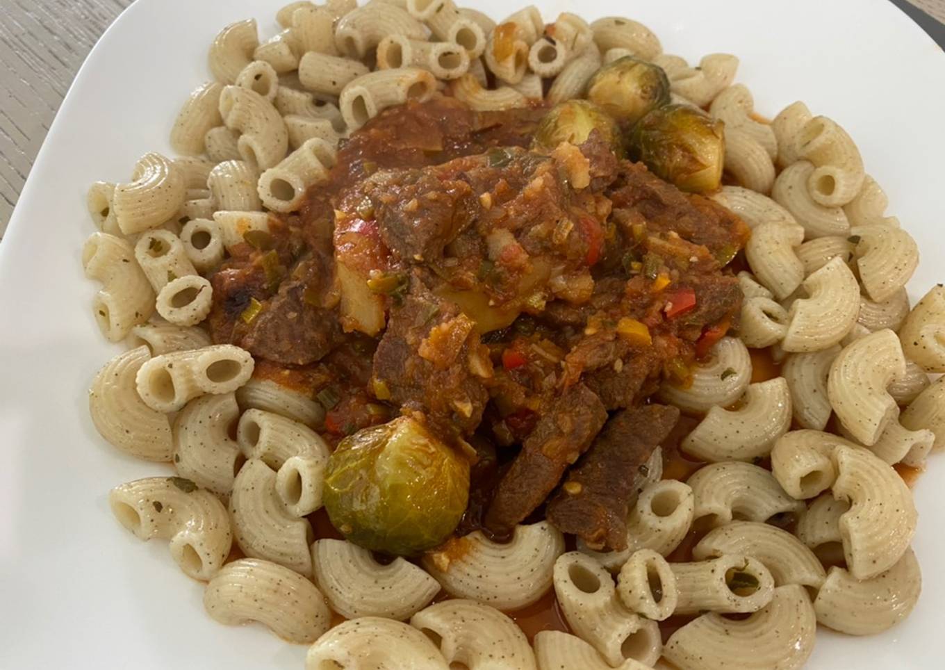Para estos días de lluvia un rico plato caliente de estofado de res, con papas y coles , primera vez que se me ocurre acompañar esta carne con pasta, para aprovechar su rica salsa, el resultado? Inmejorable!#10semanas