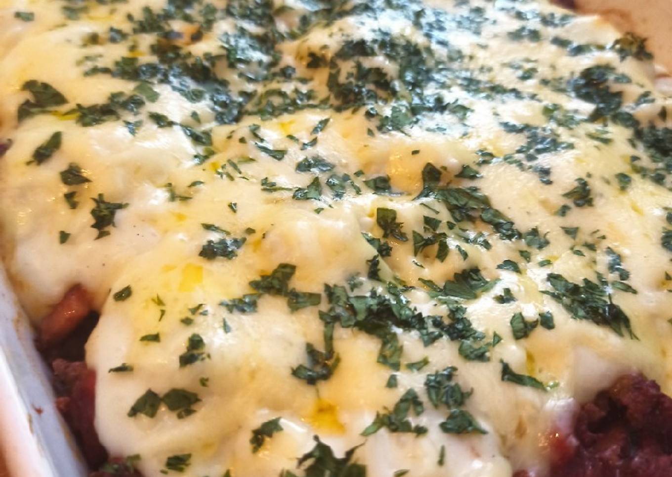 - Piqué un buen puñado de perejil fresco y lo coloqué sobre la muzzarella. Llevé al horno por 20 minutos.