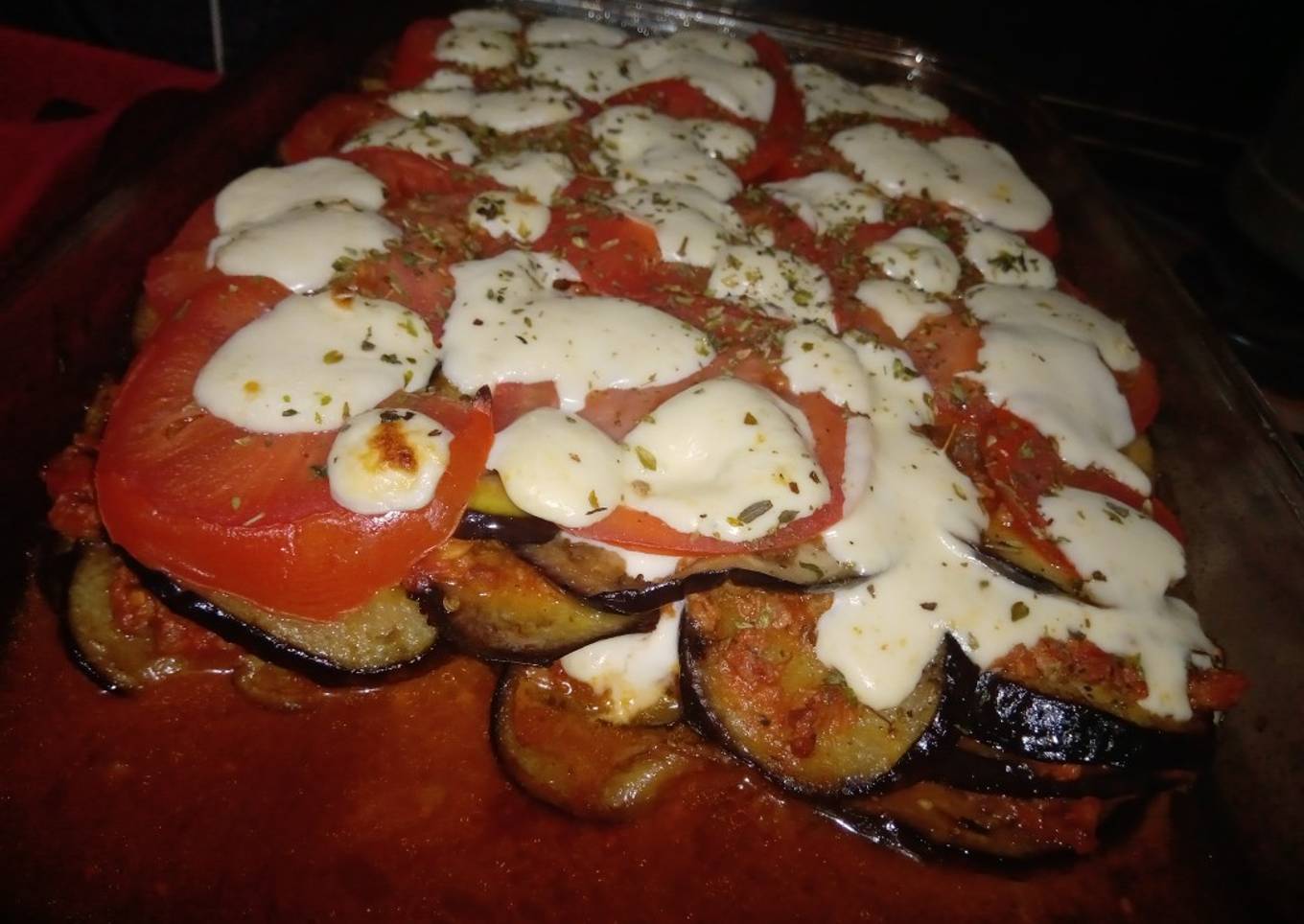 - Otra capa de berenjena, otra de relleno, queso.